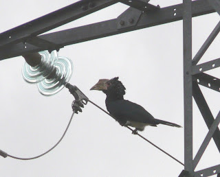 Por cierto, en la previa del Maratón Ornitológico me encontré al siguiente sujeto en una antena del pueblo alavés de Laguardia. Tras una pequeña investigación he averiguado que se trata de un Cálao Cariplateado (Ceratogymna brevis) seguramente escapado de un parque ornitológico cercano.